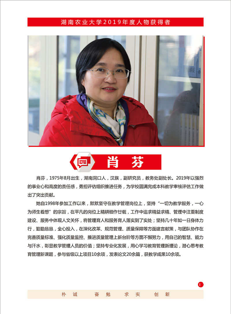 三十年人生路,十三载从教心。你以外语思政课程为主阵地,传播中国好声音,让能力培养与价值引领同频共振。着力打造外语“金”课,奋力孕育思政“红”果,在润物细无声中实现价值指引湘农学子,成为堪当民族复兴大任的新时代优秀青年。